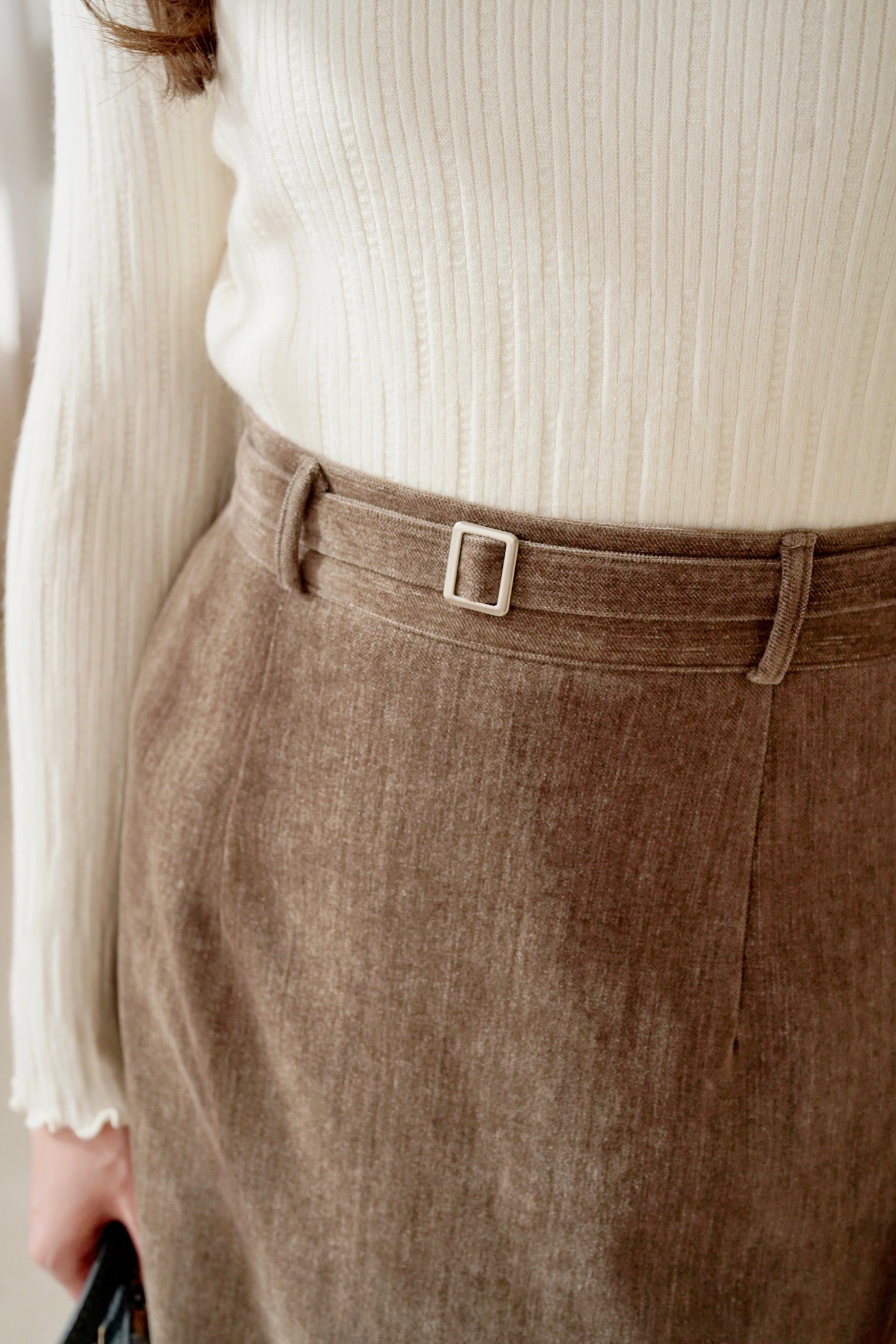 簡約薄登芯絨長裙 襯搭程度很高的下身單品
