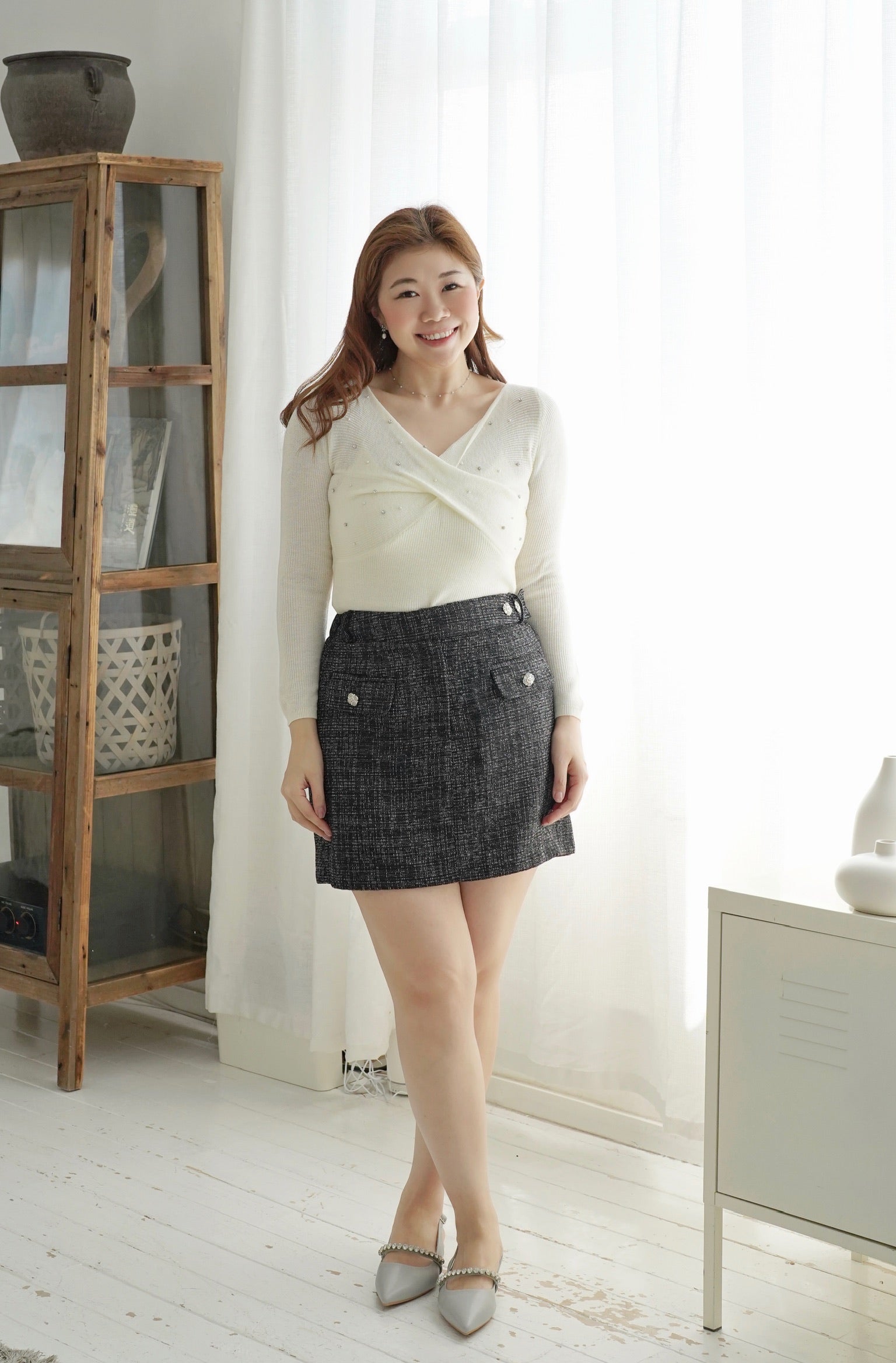 配以珍珠及閃石 對上半身想顯得俐落的女生很友好