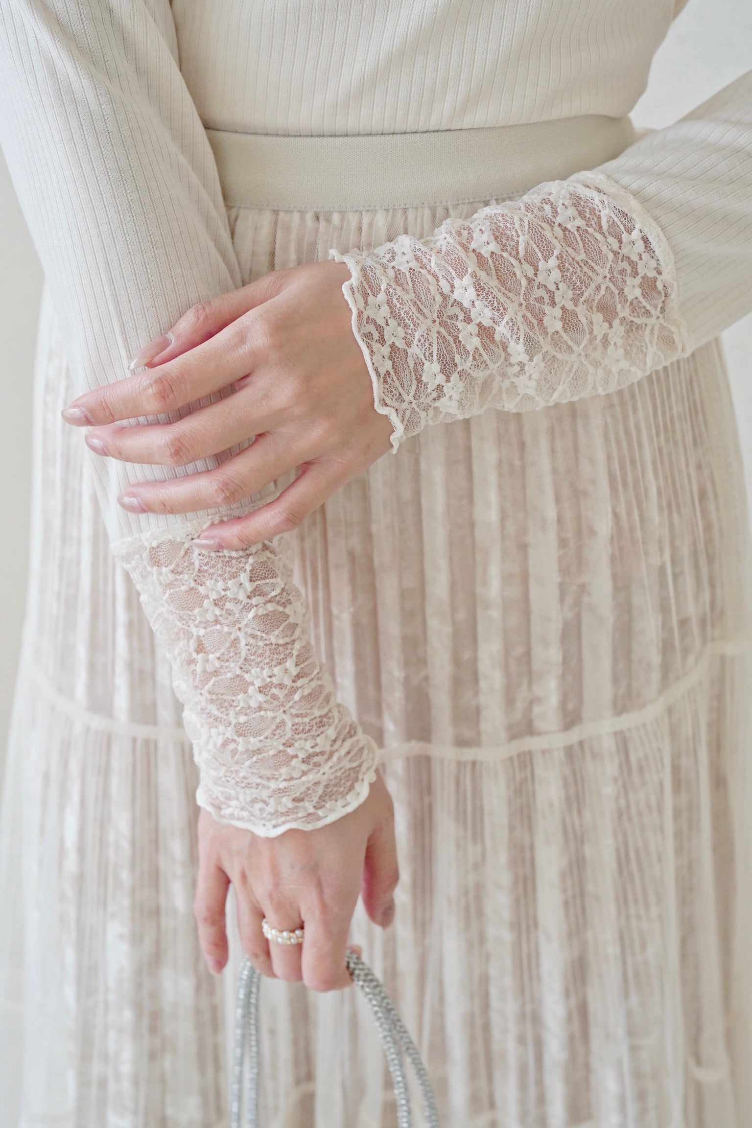 領口、袖口蕾絲邊設計