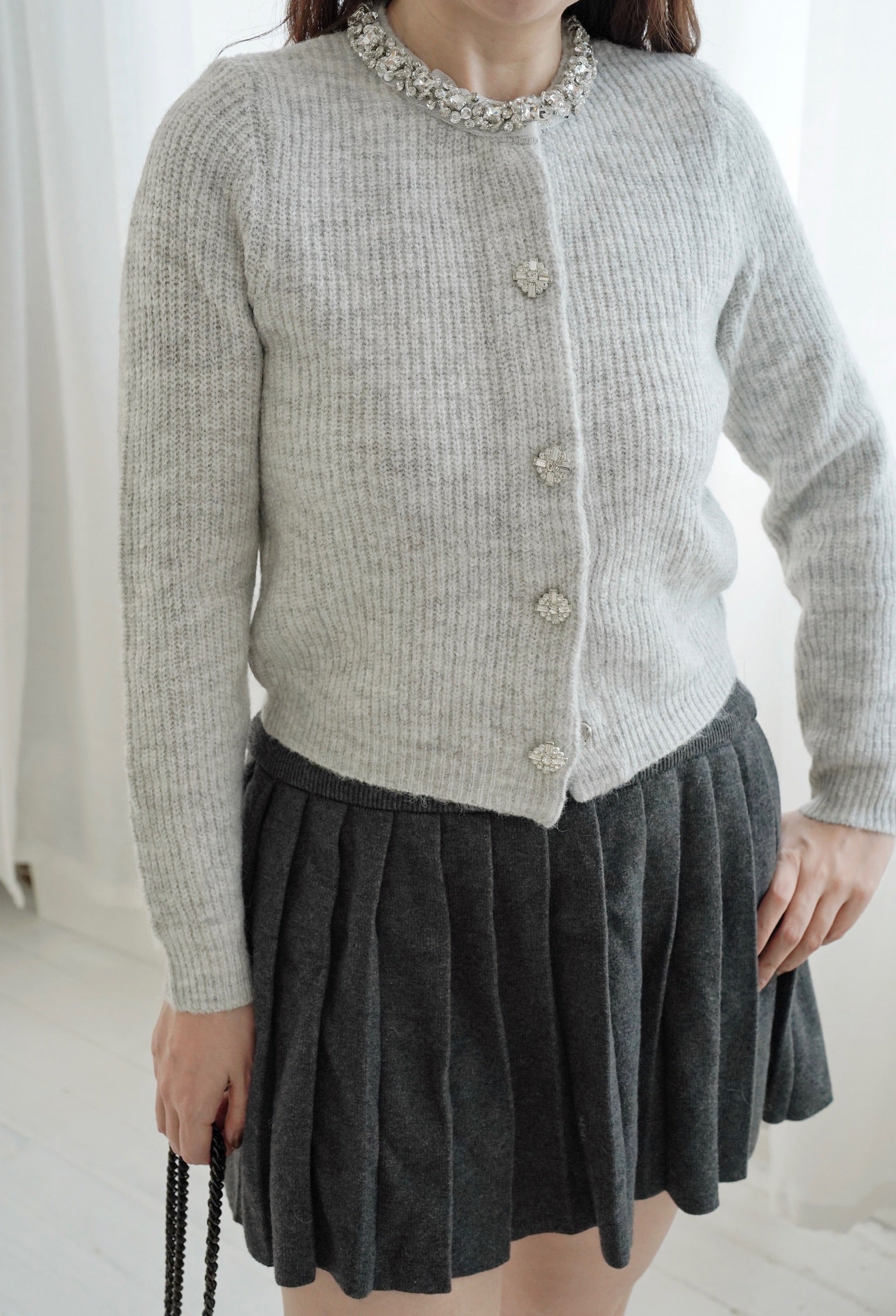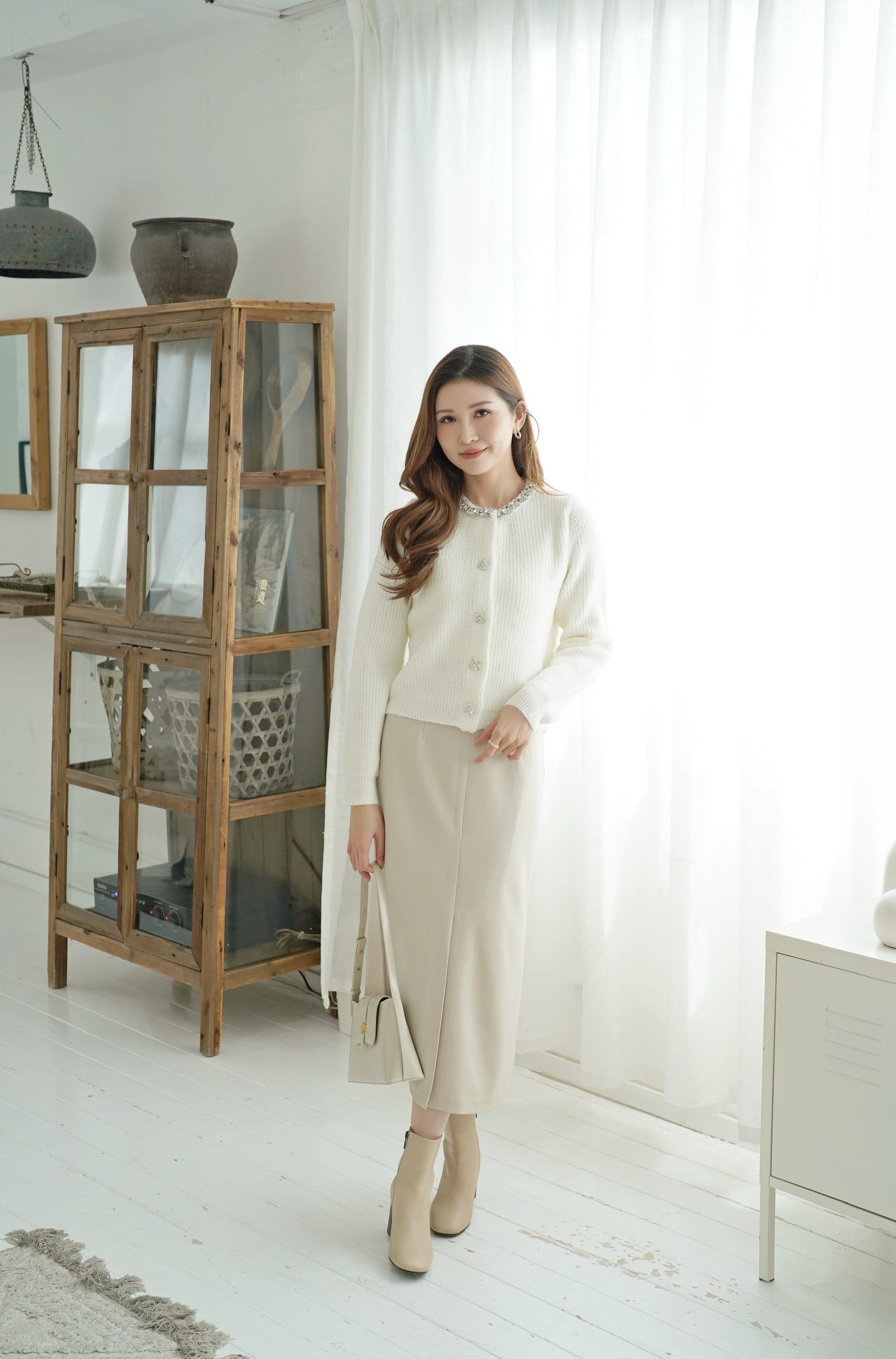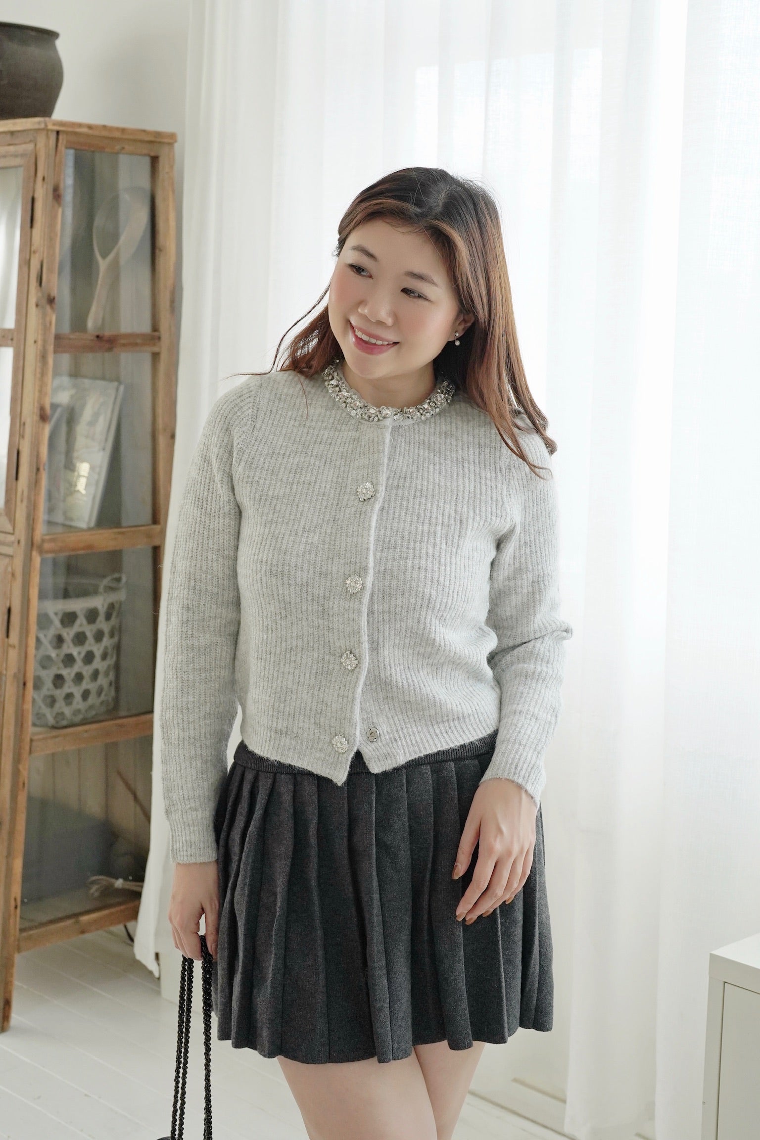 温柔白色及高級淺灰色 領口配以閃石增加層次